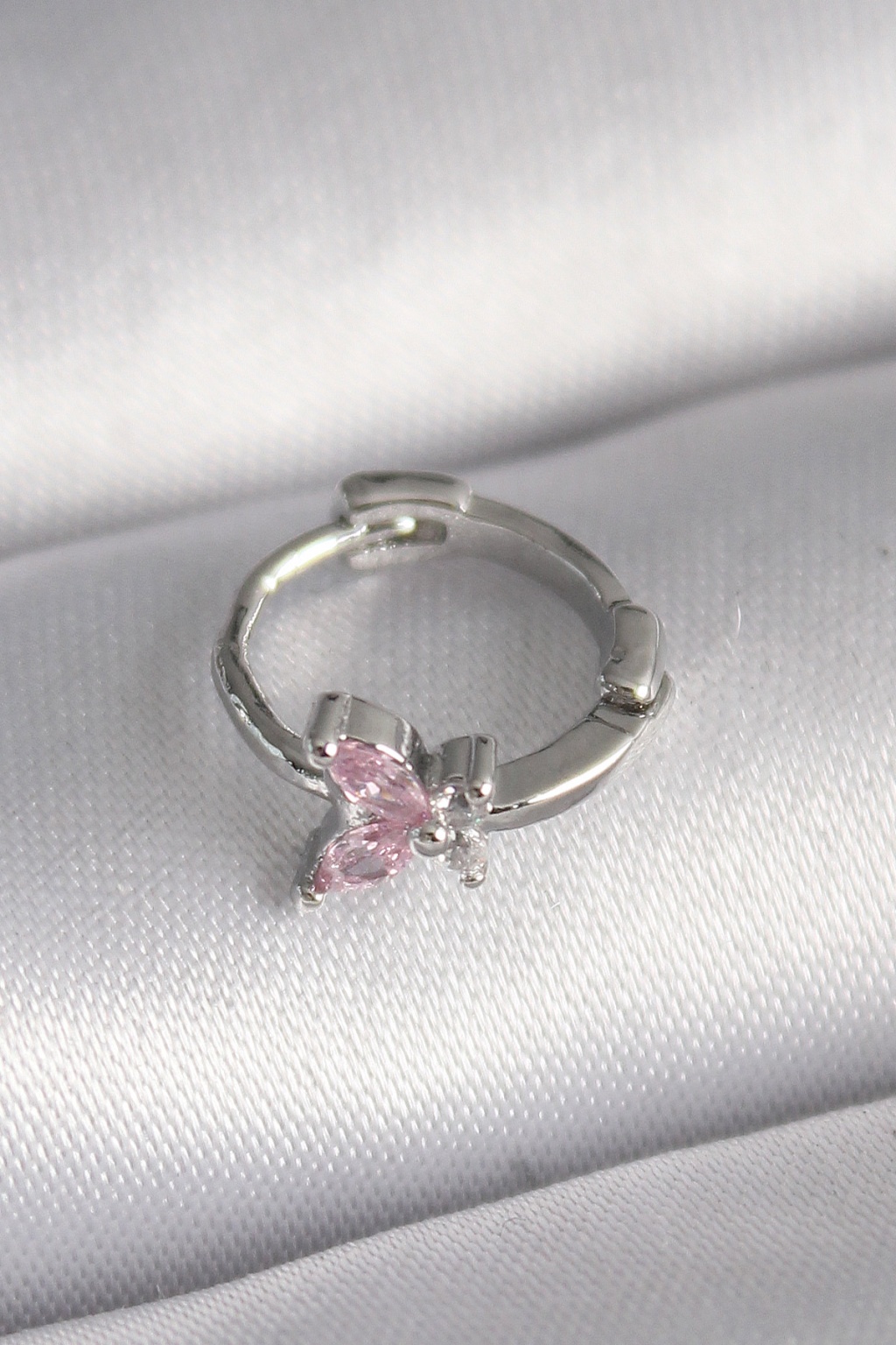 316L Çelik Gümüş Renk Pembe Zirkon Taşlı Kelebek Model Tragus Piercing