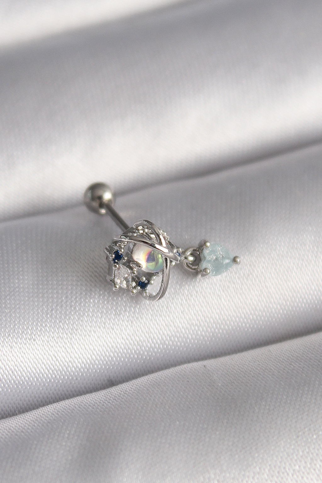 316L Çelik Gümüş Renk Zirkon Taşlı Kurdele Model Tragus Piercing