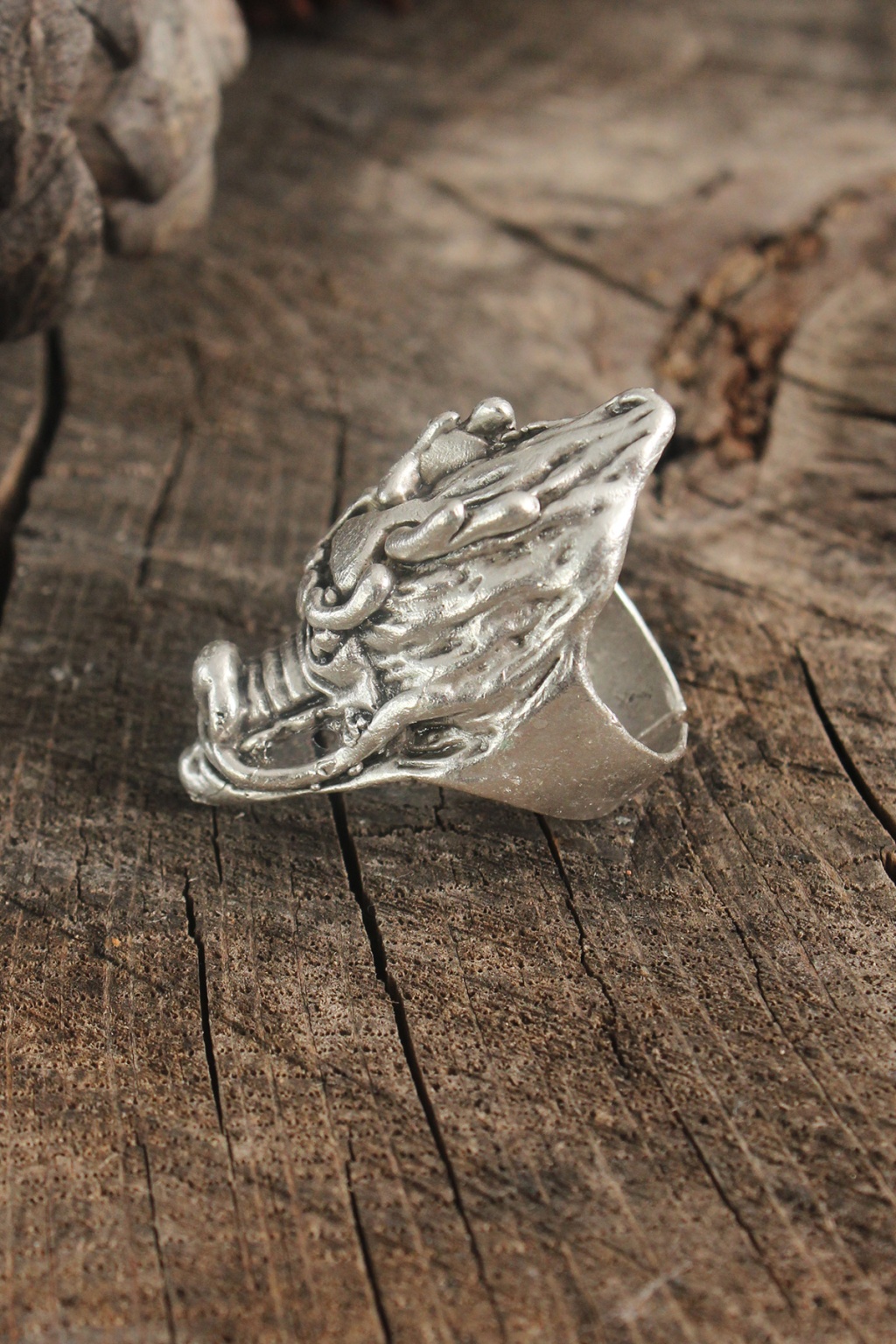Antik Gümüş Renk Ejderha Kafası Model Ayarlanabilir Erkek Yüzük