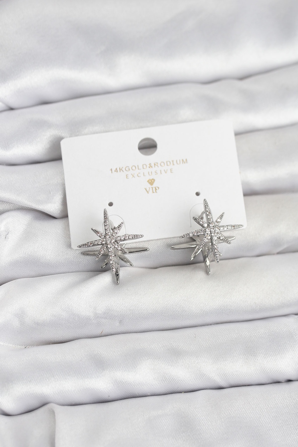 Gümüş Renk Pirinç Çift Taraflı Kutup Yıldızı Kadın Küpe 135,84 TL