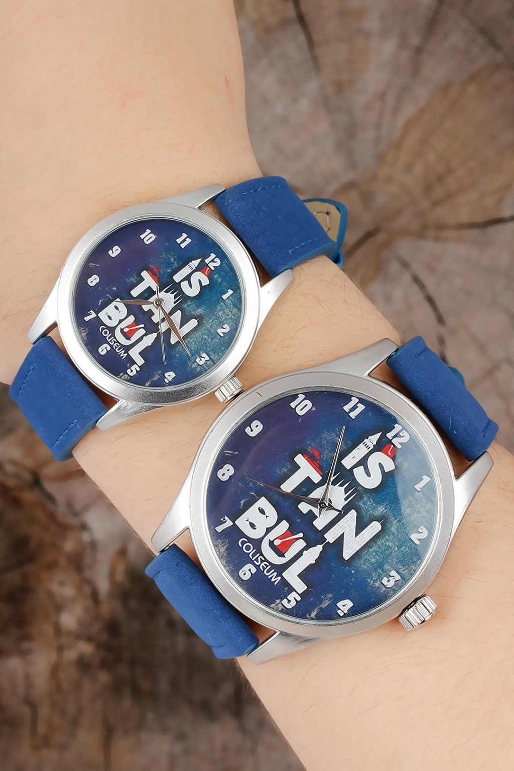 İstanbul Tasarım Lacivert Deri Kordonlu Sevgili Saatleri
