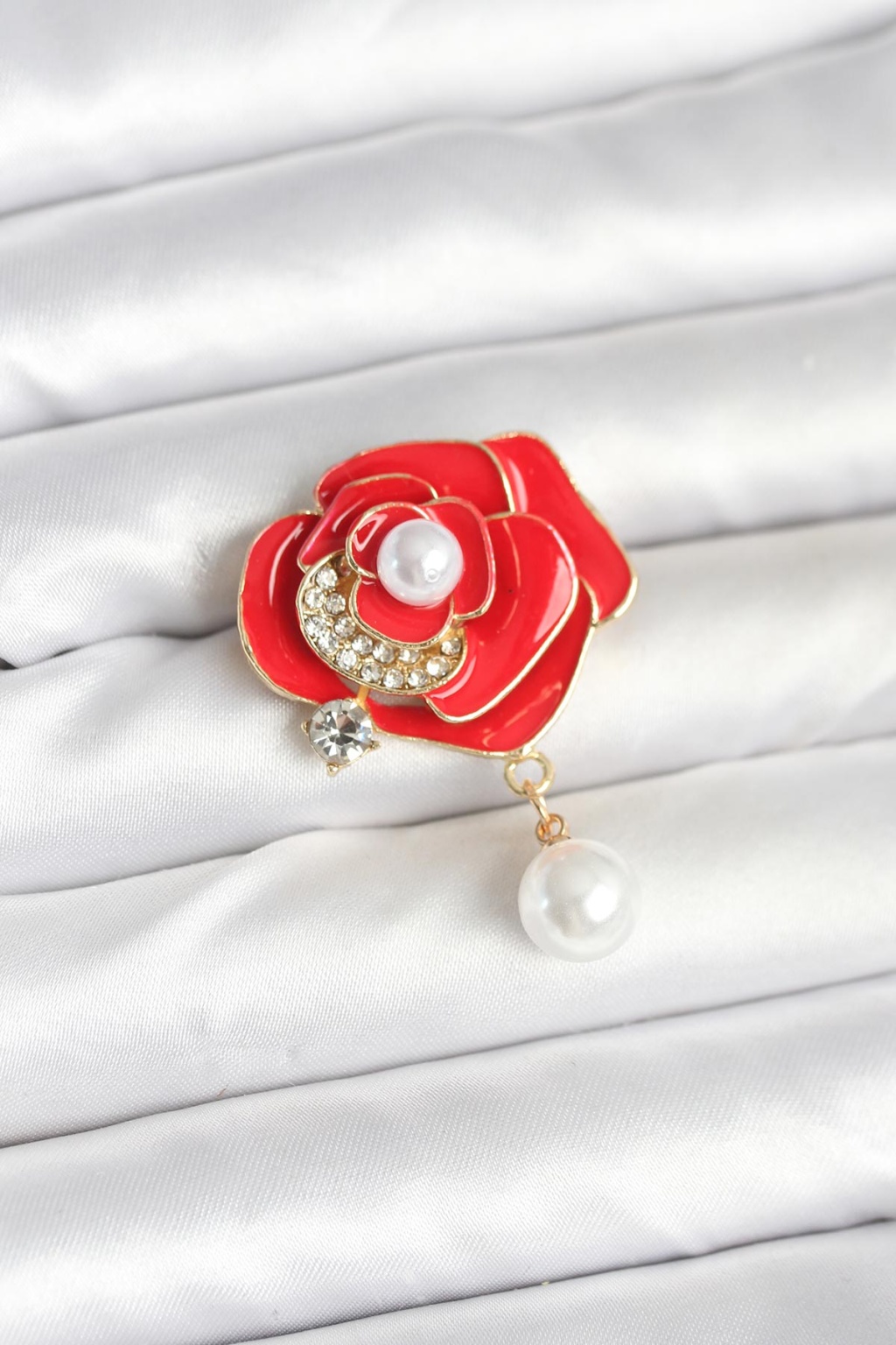 Kırmızı Gül İncili Model Broş 98,76 TL