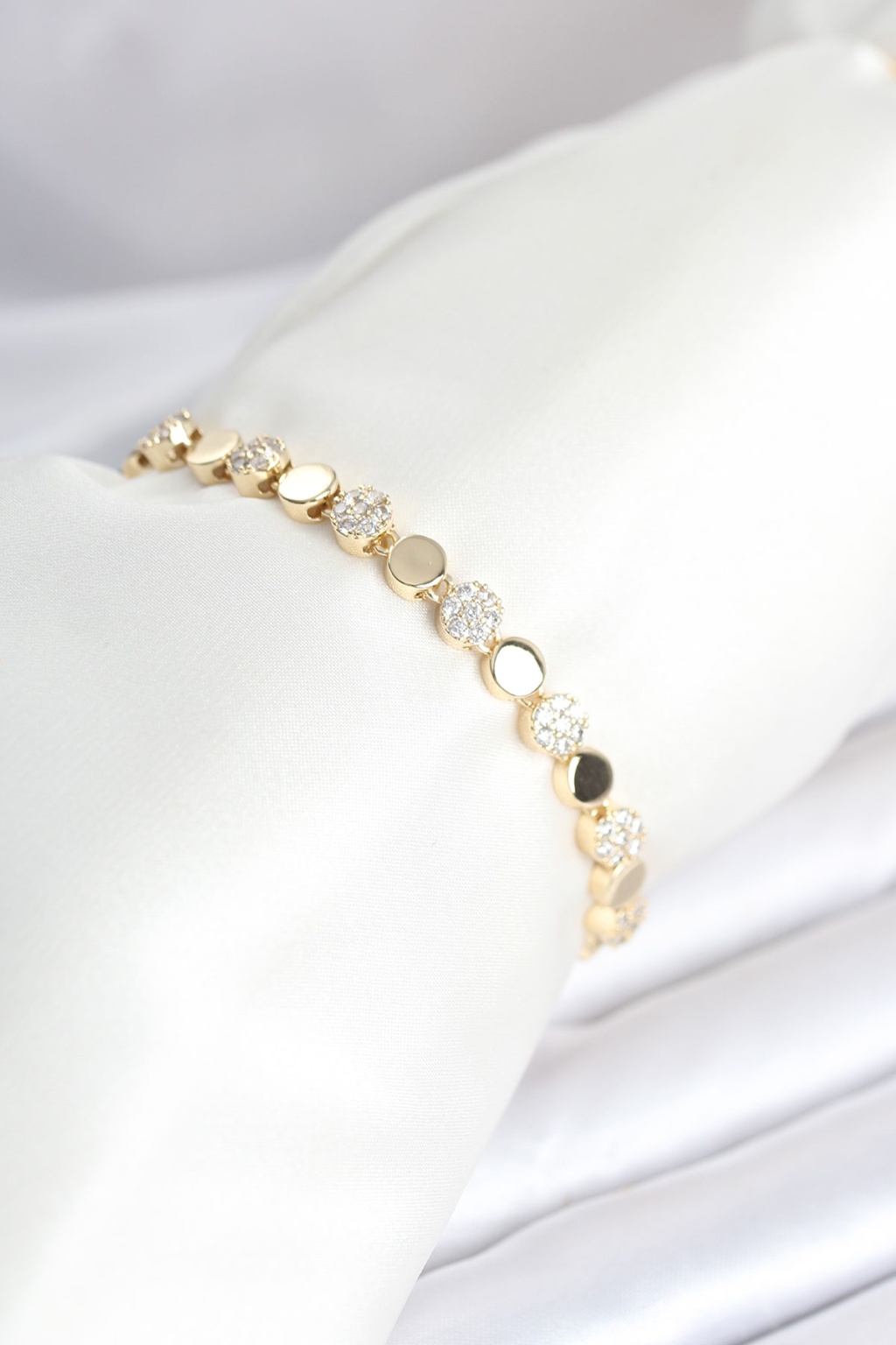 Pirinç Gold Renk Nokta Model Zirkon Taşlı Kadın Bileklik