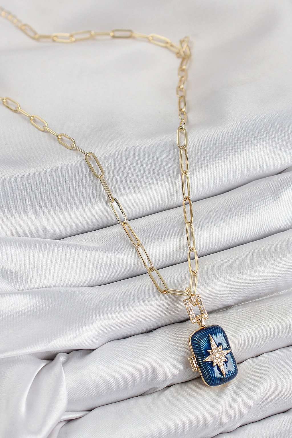 Pirinç Zirkon Taşlı Açılabilir Kutup Yıldızı Model Gold Renk Kadın Kolye
